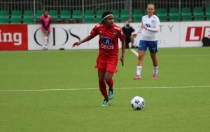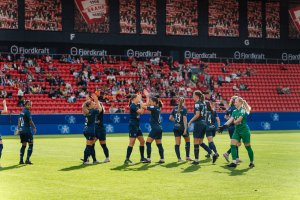 Sol og god stemning på tribunen. En jevn kamp på banen. Røa går opp i ledelsen i førsteomgang, men oppgjøret mot Bodø/Glimt ender med et uavgjort resultat.